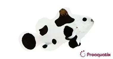 The Black Storm Clownfish is a striking designer variety of the Ocellaris Clownfish. It features bold, irregular black and white patterns with high contrast, making it a standout addition to any marine aquarium. This captive-bred fish is known for its hardiness and peaceful nature.